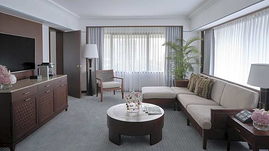 Executive Suites feature a spacious living room with lush sofa, daybed and flat-screen cable TV. The separate master bedroom includes a large walk-in closet, a dressing area and marble bathroom.
