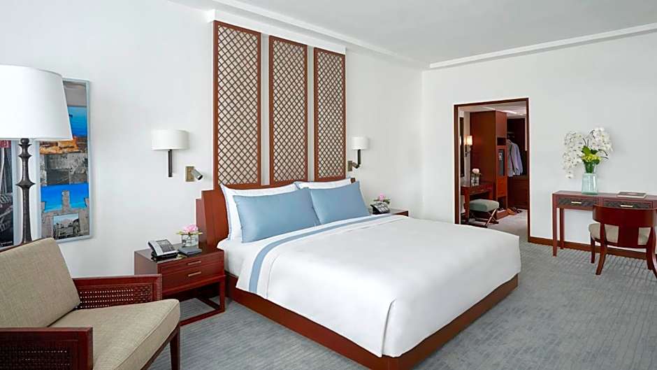This suite feature a spacious living room bathed in natural light lush sofa, daybed and flat-screen cable TV. The separate master bedroom includes a large walk-in closet, a dressing area, and marble bathroom. The dining area comfortably seats four for an exclusive dining experience while the master bedroom is elegantly appointed.